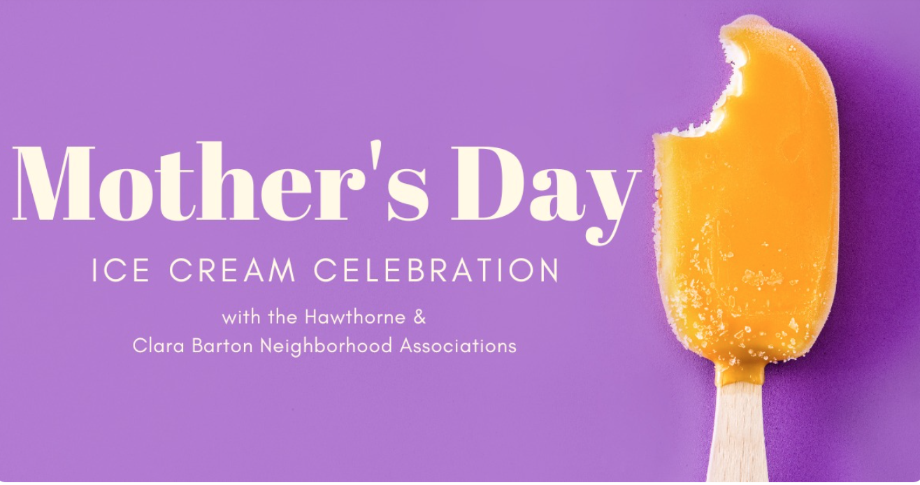 Celebrate Mother's Day with free ice cream treats from Cosmic Treats from 1:00pm-3:00pm, Sunday May 10th at the Hawthorne Elementary School Playground!